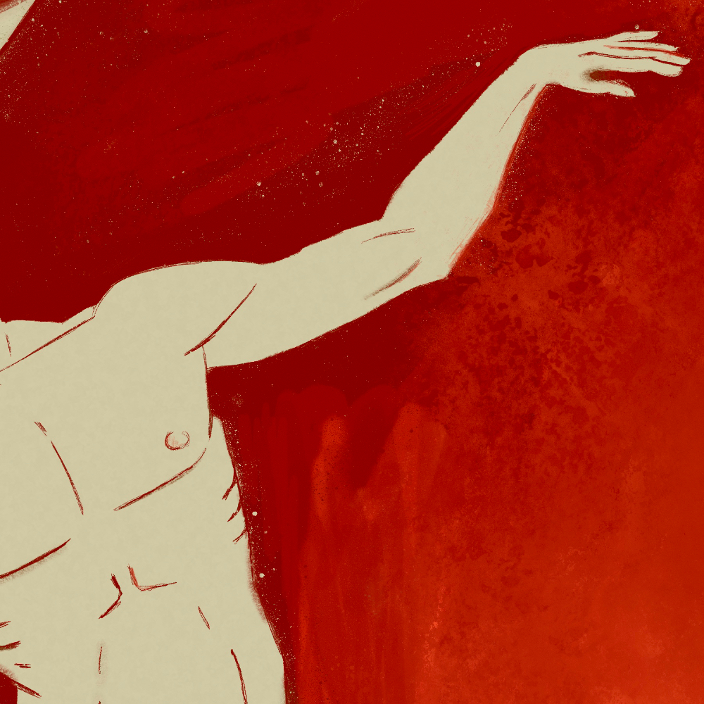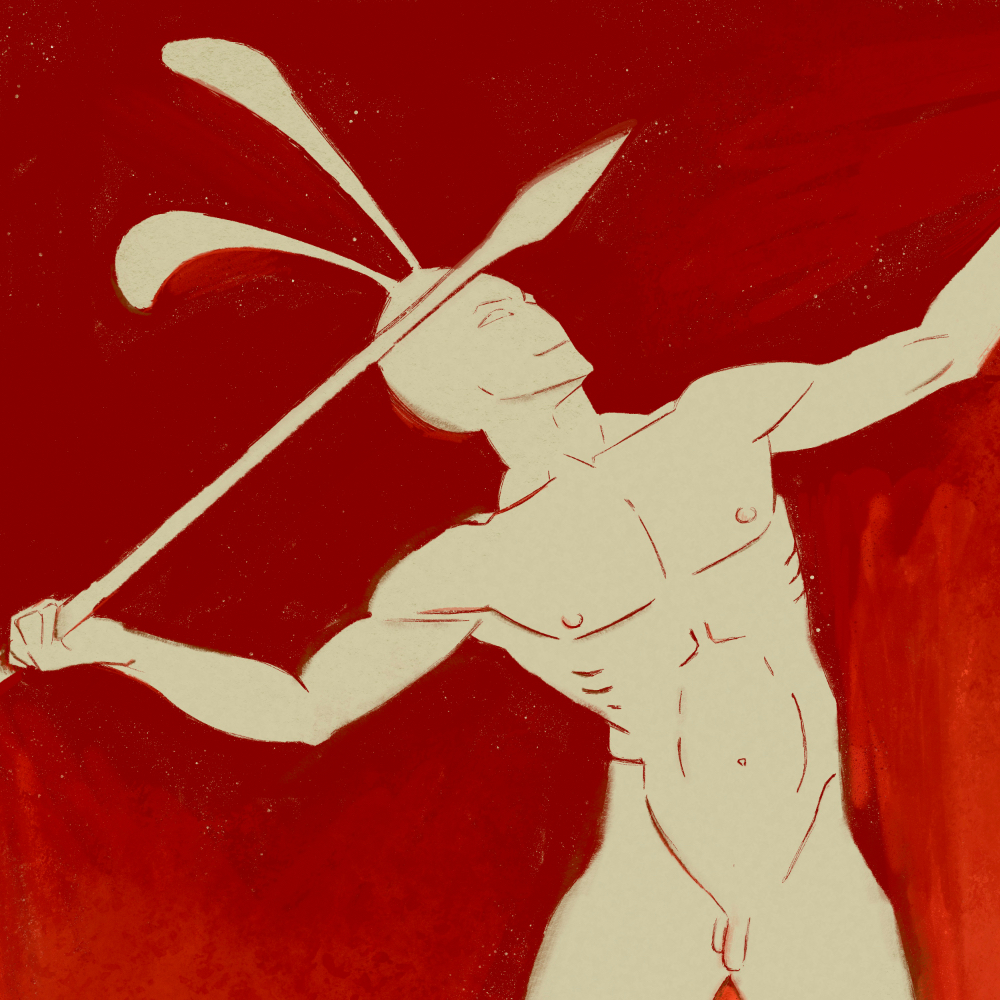 The line work in this Hero painting is inspired by vintage Olympic poster design from the 1920s and 30s.