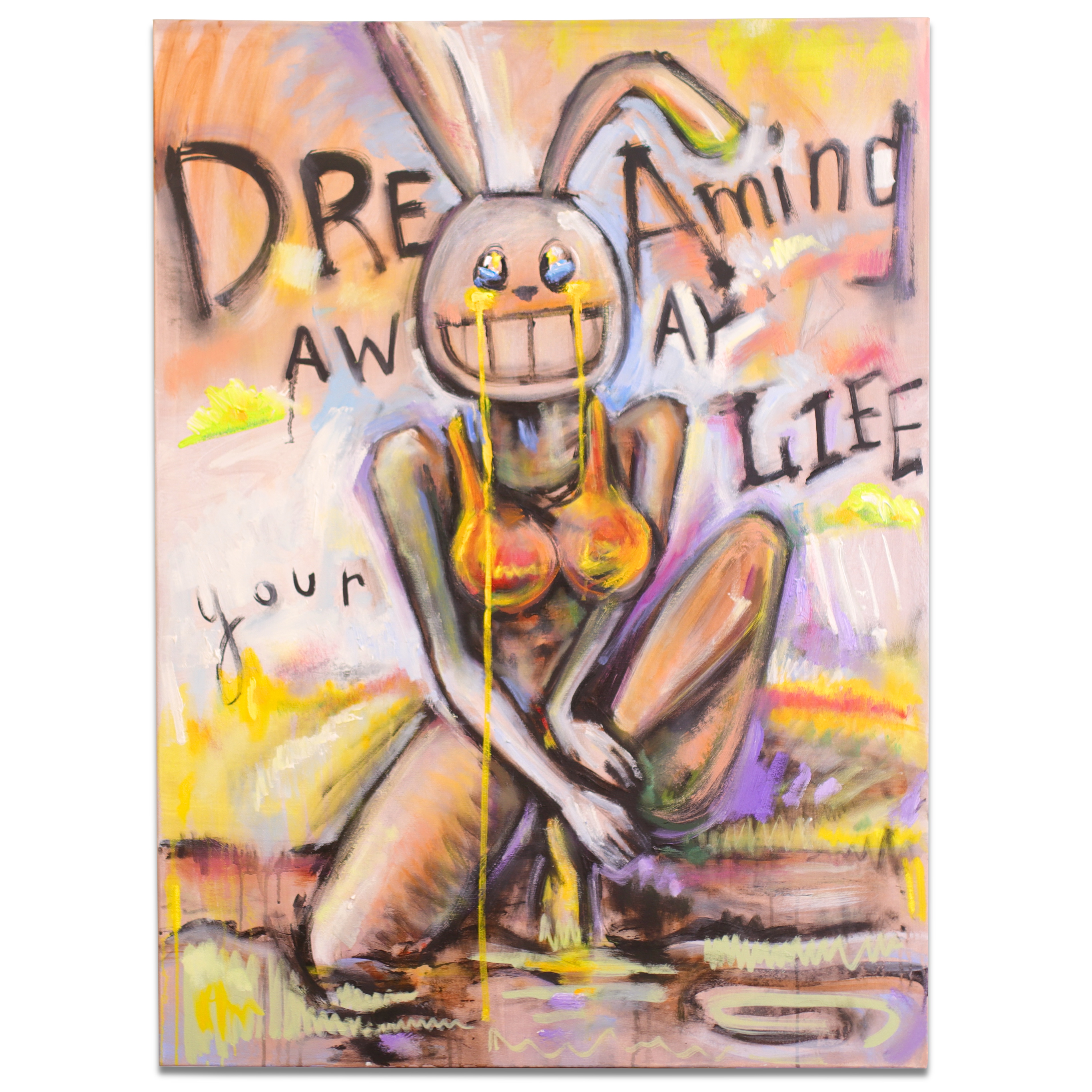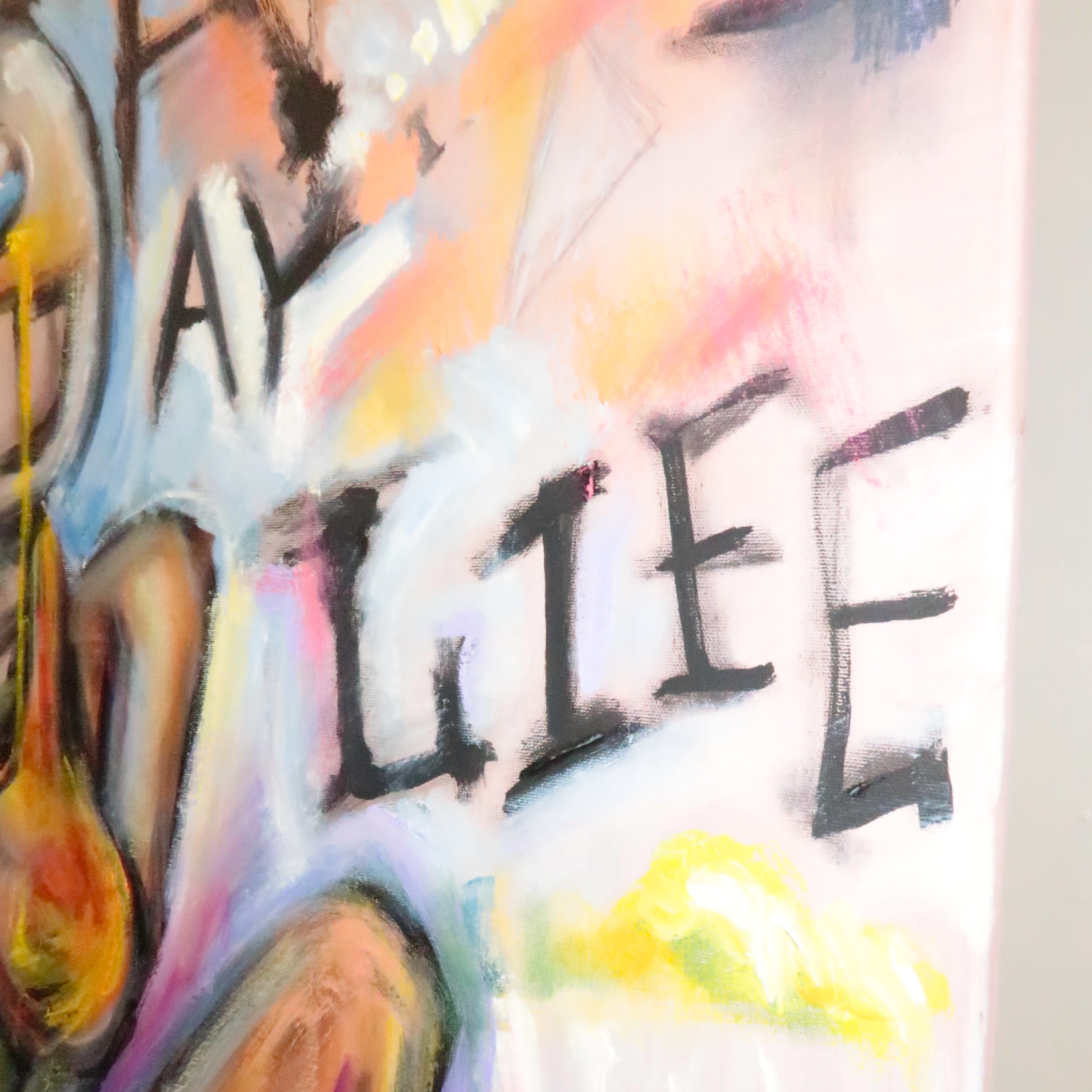 So, she smiles and tries to hold on to the dream of Summer. “Dreaming Away Your Life” is a lyric from a Lana Del Rey song I was listening to on repeat while painting this scene.