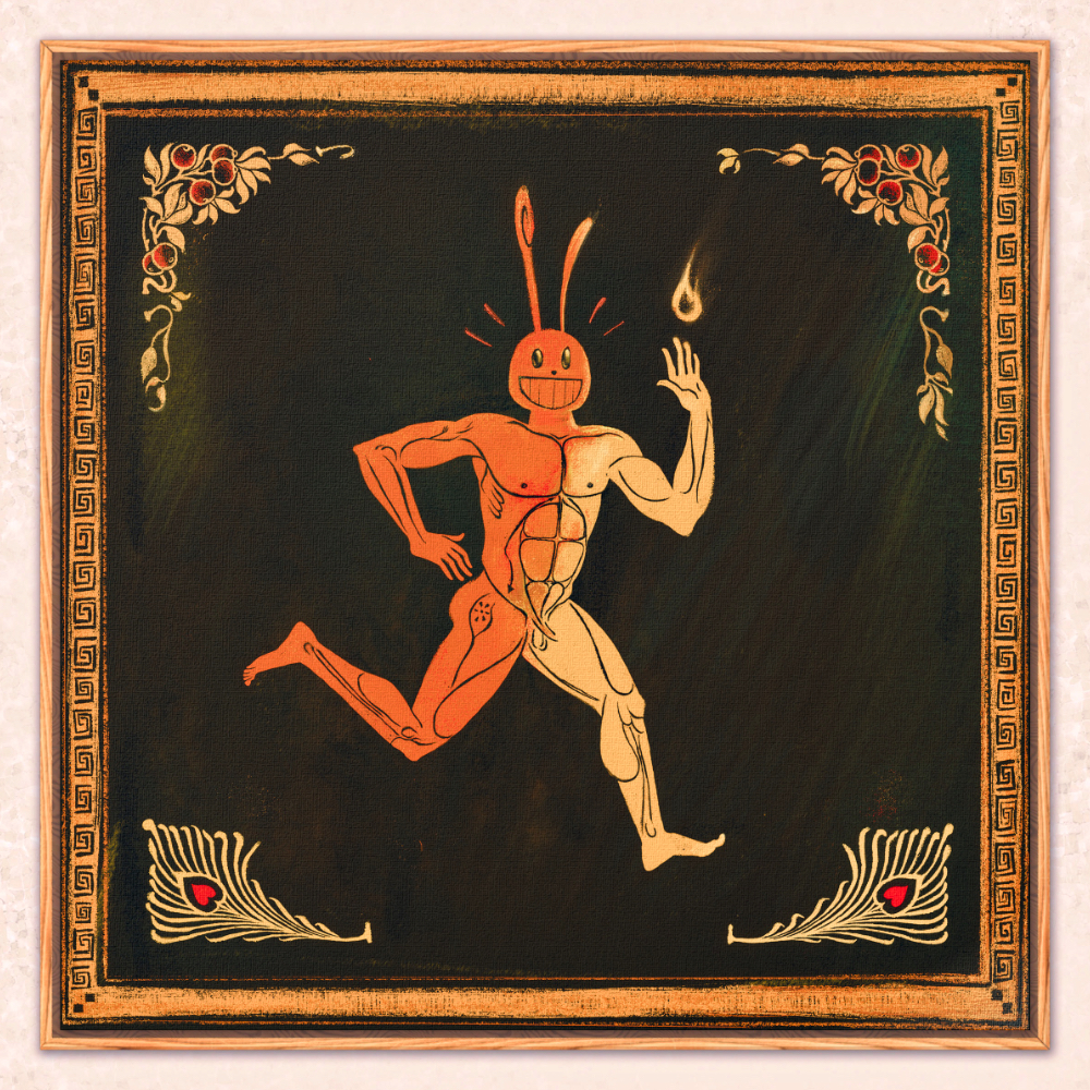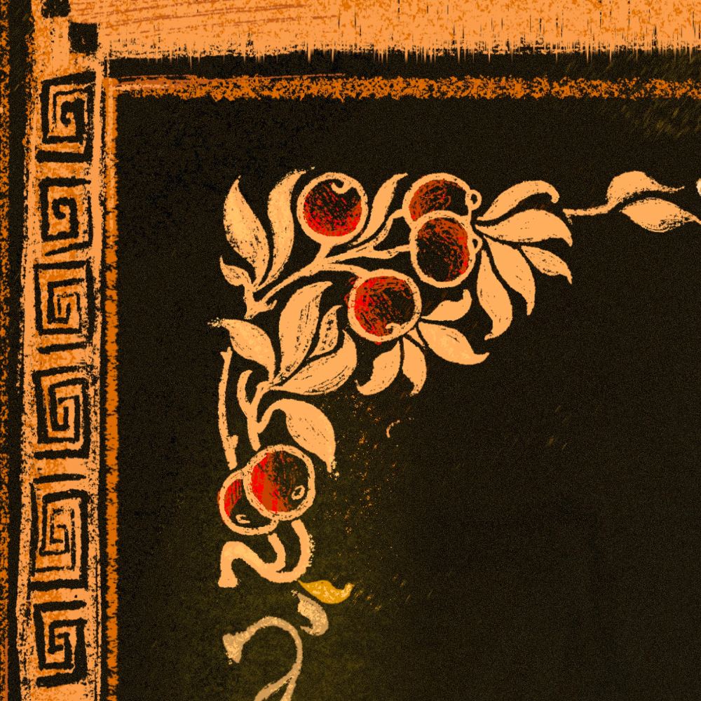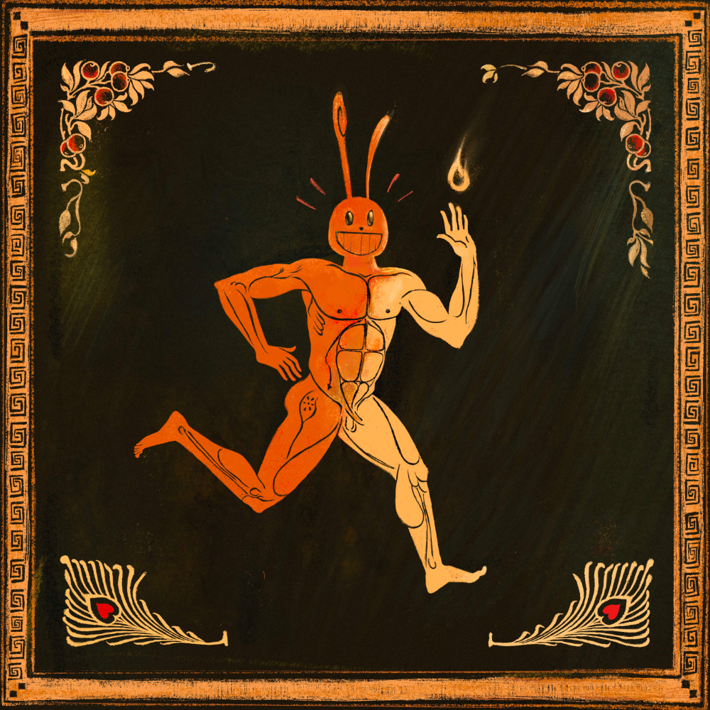 This piece is inspired by one of my favorite ancient art forms: Athenian Vase Painting or "Black-and-Red Pottery".