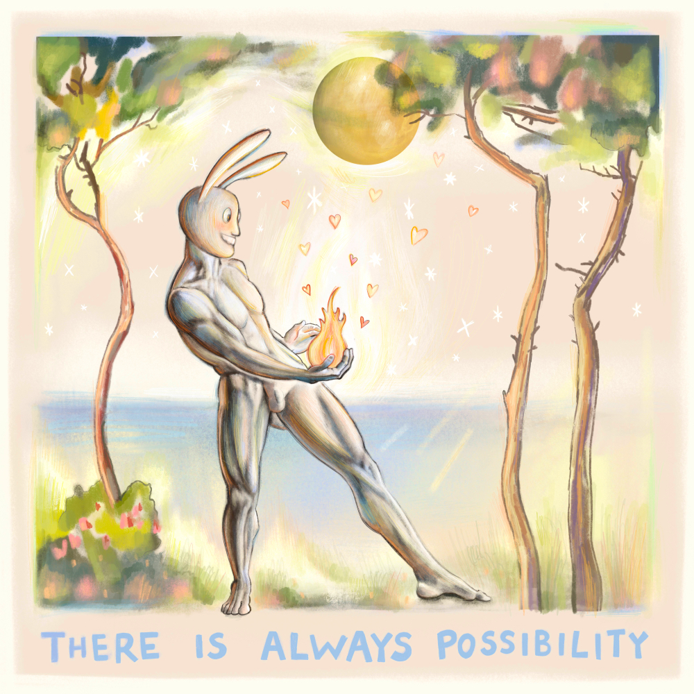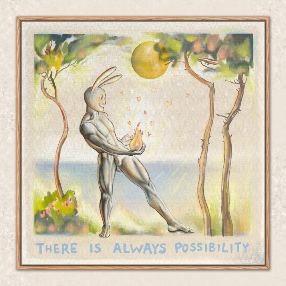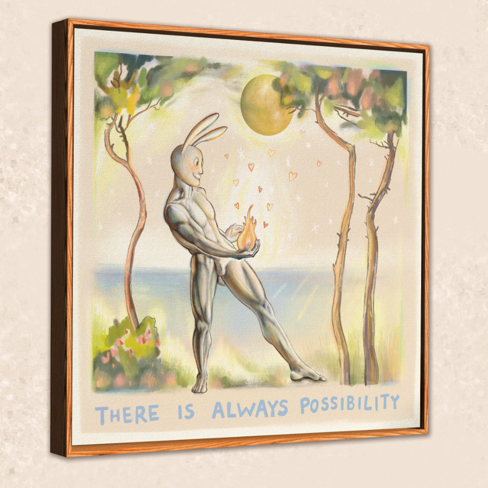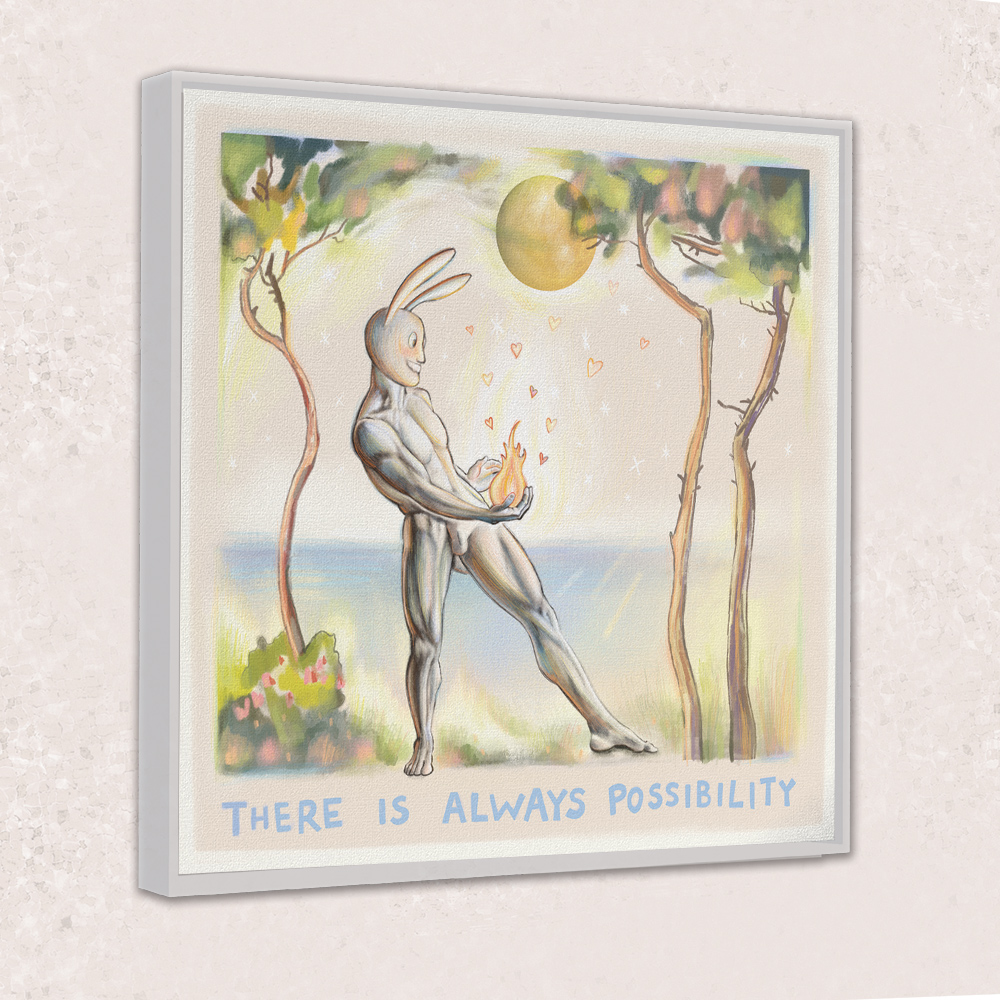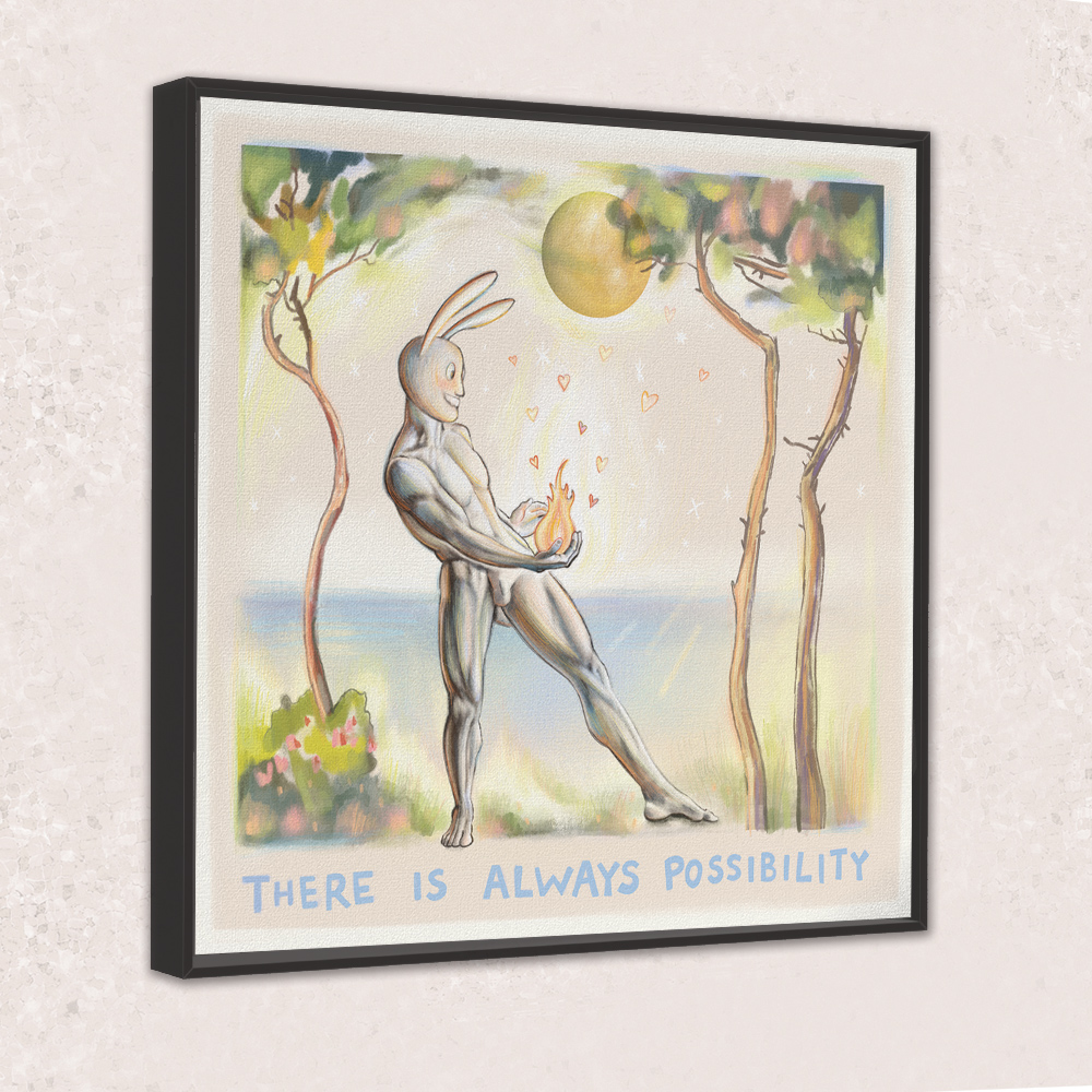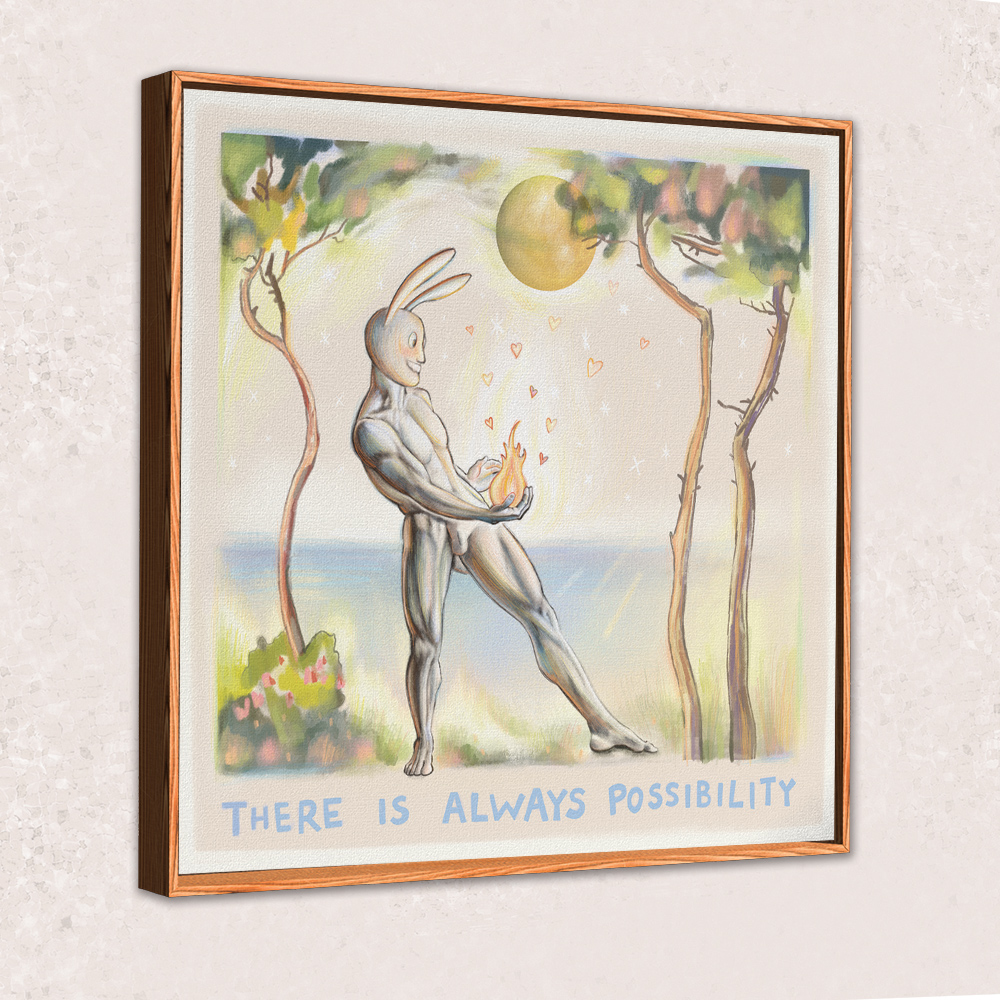 Choose between three colors of floating frames. "There is Always Possibility" is an original painting by Cody Gene printed onto a premium stretched cotton canvas weave.