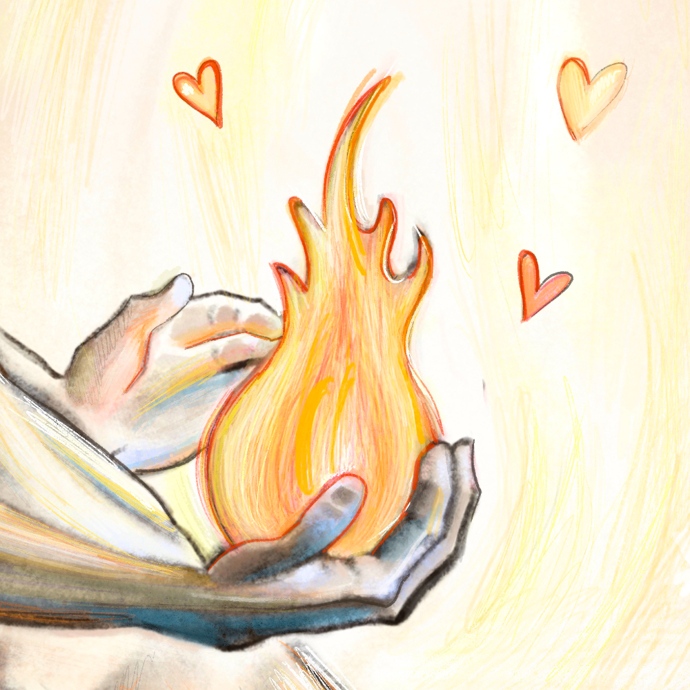 And the flame! In my mind, "Hero" is a bit of a video game character, always looking for new collectables. He found the fire of passion which gives him the ever-important message: