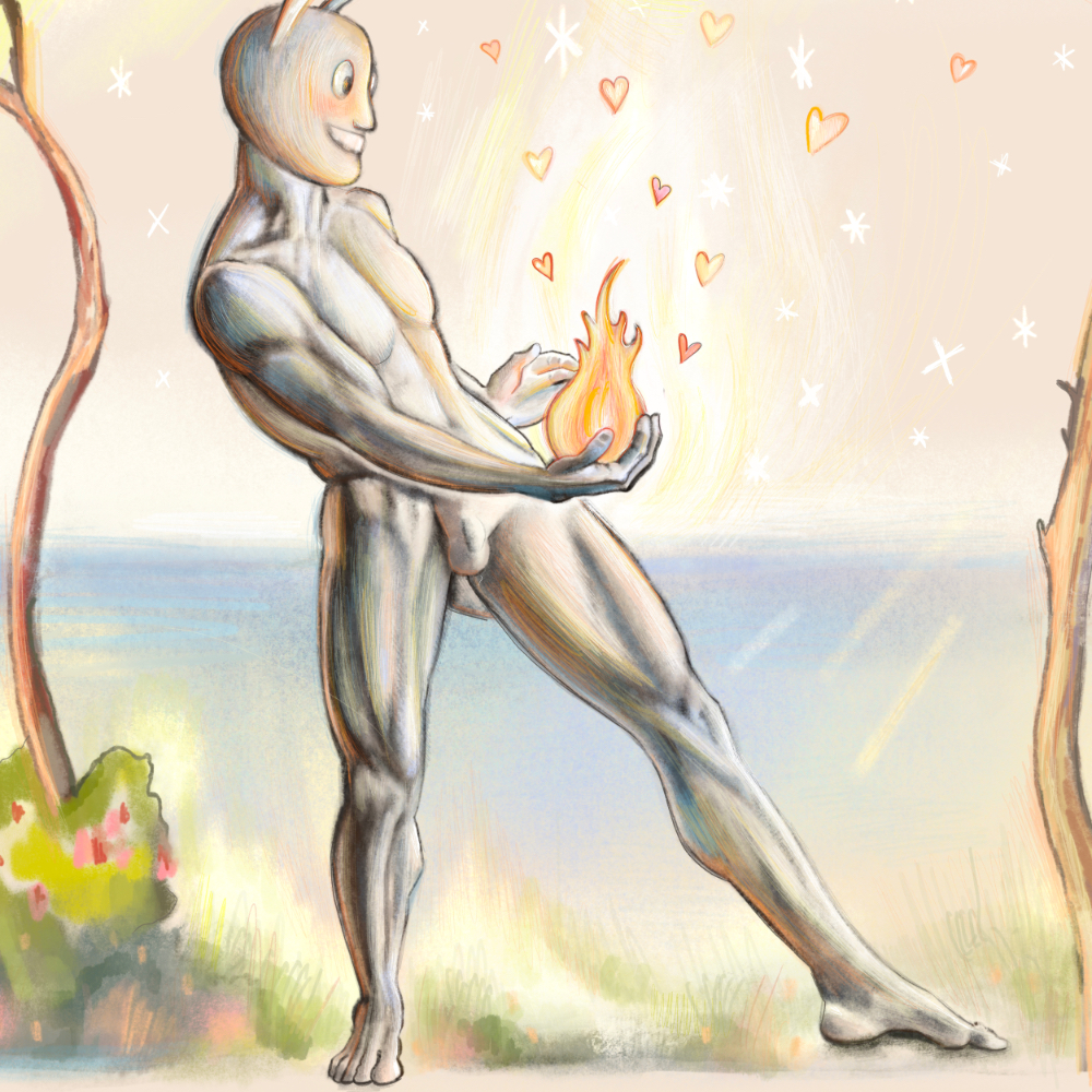 I just love how it gives the shadows and highlights an almost "rainbow" tint. Like he's glowing from within, from a pure light that contains all colors.