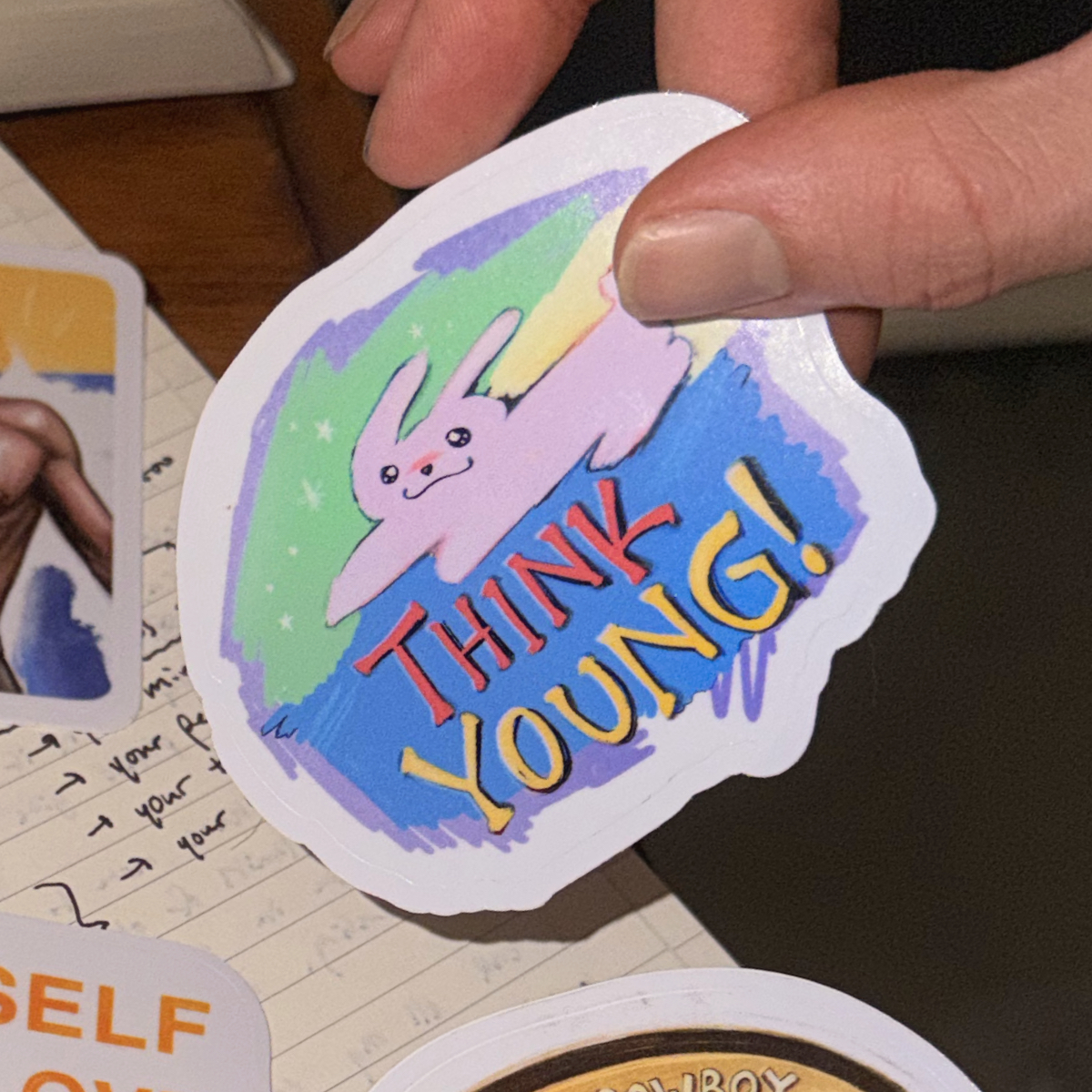 This sticker is to remind me, and anyone who needs it, that you are as young and free as you think. Try new things at every age. Think Young, and watch the world open up to you again and again. :)